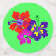 Table confetti with bold hibiscus flowers design. Bright, tropical colors of hot pink, lemon yellow, green and blue are the background for three artistic flowers. A fun addition to any tropical or Hawaiian themed party, or luau.
