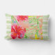 Pastel Green Striped Hibiscus Flower Tropical Print Reversible Lumbar Throw Pillow