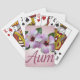 This is a pretty colourful artistic Hibiscus Aum deck of playing cards. The cards look very artistic with two pretty lavender and white hibiscus flowers, a pretty pink background and the word Aum which is a meditation mantra. The playing cards have pretty pink, lavender and white spiritual colours. Saying Aum or chanting Aum could improve your luck playing.