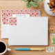 Lively summer flower pattern with pink and peach tropical flowers. A customised printed return address envelope.