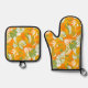 Hibiscus Jungle Hawaiian Tropical Floral Orange Oven Mitt & Pot Holder Set