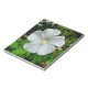Close up of a white Hibiscus flower with a fully developed pistil following rainfall