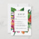 This RSVP card is a perfect fusion of formal and funny, great for any modern couple! This design features hand painted tropical foliage and a sleek white frame.