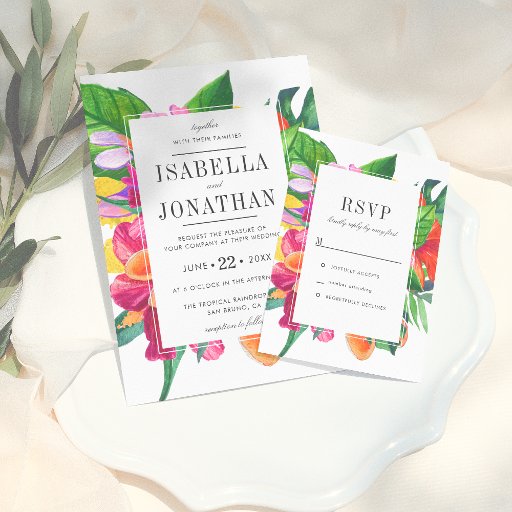 Hibiscus, Plumeria & Palm Modern Wedding RSVP Invitation