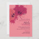 A modern design featuring hibiscus flowers in deep beery and peach colours against a grunge pink backdrop. Well-suited for any feminine celebration, garden party, luau, and more.