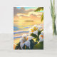 Tropical birthday card with a spectacular sunset, palm trees, hibiscus flowers, and ocean waves. Personalise with your own saying if you would like.