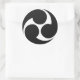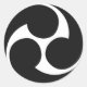 This sticker shows the round Japanese "Mitsudomoe" 三つ巴 (lit. "three commas") crest.