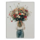 A person dressed in casual jeans and a simple white top holds an enormous bouquet of wildflowers that completely obscures their face. The large, colourful arrangement of daisies, poppies, and other vibrant blooms contrasts with the minimalist background and attire, creating a striking visual that emphasizes the beauty of nature. The scene exudes a sense of whimsy and serenity, as the flowers take centre stage, symbolising growth, life, and simplicity.