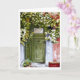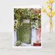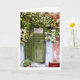 An old, weathered green door nearly hidden behind the colourful vine growing on the side of the house. The peeling red plaster on the wall adds a nice contrast the the green of the vine. A reproduction of an original watercolor painting.