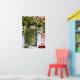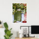 An old, weathered green door nearly hidden behind the colourful vine growing on the side of the house. The peeling red plaster on the wall adds a nice contrast the the green of the vine. A reproduction of an original watercolor painting.