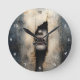 Wall Clock, 25.4 cm Round Black Wooden Frame