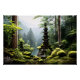 Amid lush forest, an ancient pagoda rests in silence, guarding forgotten secrets. Nature embraces the structure with moss and soft light, creating a scene of peace and contemplation.