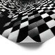 A high-impact image presenting a classic chequerboard pattern that dramatically recedes into a deep, dizzying vortex or tunnel illusion. The stark black and white squares intensify the feeling of spinning depth and motion, making it appear as though the viewer is being pulled into an endless void. The clean background ensures the illusion takes centre stage.