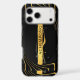 Indulge in pure luxury with the Achempong: The Auric Cascade iPhone 17 Case. This opulent, high-contrast visual masterpiece features dynamic, flowing rivulets of molten appearance and rich golden hues elegantly swirling against a deep, sophisticated monochrome black background. Accented with subtle golden borders and delicate sparkles, this design embodies timeless elegance and contemporary flair. This premium Achempong Zazzle case offers durable protection and perfectly captures a look of radiant majesty for the modern luxury consumer, showcasing high-end abstract art as a sophisticated mobile technology accessory.
