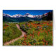 Bright red Indian Paintbrush is mixed with a variety of other wildflowers on the front of this scenic all occasion greeting card. Distant snow covered peaks and a bright blue Colorado summer sky give a stunning brilliance to the scene. A hiking trail beckons the viewer to travel on. The inside of this card is left blank for your own message.