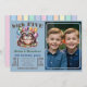 Birthday invitation of baby racoons/mapache with birthday cake. Two mapaches for two twin boys celebration 5 year birthday. 5 candles and the do a high five.