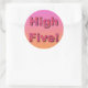 Round sticker with that catchphrase that started in the 80s “High Five” in vibrant pink and orange geometric letters on ombre orange and pink. See matching custom-cut vinyl sticker, confetti, favour tag, label and wrapping paper. See the entire Tubular 80s Sticker collection in the INVITES | Stickers & Labels section.