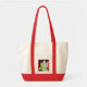 It has sturdy handles and is a canvas tote. It is just what I wanted for my neice to take stuff to the beach on their honeymoon!! The printing was just as pictured.