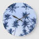 Trendy background of high palm trees with clear blue sky. Empty place and copy space. Tropical vacations concept.