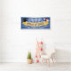 This bold text design has a template to input the name of your high school or college and class year. The blue background contrasts well with the yellow banner and bright white text for an easy-to-read banner. Text reads 'Congratulations! High School Name Class of 20XX we salute you!'