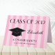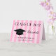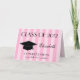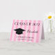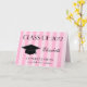 This playful high school graduation card features a pink stripe backdrop for a graduation cap. The Class Of year appears at the top of the design which may be personalized with the name of the graduate. The words "CONGRATULATIONS on your high school graduation" appear below the graduation cap. Inside you will find a nice high school graduation sentiment. Copyright Kathy Henis