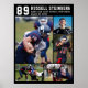 Honour and celebrate your high school sports senior on Seniors Night, at the athletics awards banquet or display at his or her graduation party this photo collage poster print with 5 pictures and personalised with your player's number, initials or school monogram, name and your custom text in your choice of text and background colours (the sample shows school name, mascot name and class year in white on black). OPTIONS: The sample is shown in a 18x24" size on Value Paper (Matte); other standard and custom print sizes and paper quality, Instant Digital Download file for printing locally or transferring the design to a foam board, banner, canvas or other product options are available on the ordering page. RESIZING TIP: Choose Custom Size for even borders by changing the height and width proportionately AFTER clicking the UNLOCK icon (looks like a chain link). ASSISTANCE: For help with design modification or personalisation, colour change, resizing or transferring the design, contact the designer BEFORE ORDERING via the Zazzle Chat MESSAGE tab or email makeitaboutyoustore@gmail.com.