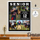 Create a custom sports photo collage poster ideal for high school senior night recognition, sports awards ceremony or banquet or graduation party decor utilizing this easy-to-upload photo collage template showcasing 5 pictures in various shapes and sizes with the title SENIOR incorporating their class year and your athlete's name, jersey number or school initials, school name and/or mascot name or your custom text in your choice of text and background colors you can change to school colors in EDIT (shown with white text on black). OPTIONS: The sample is shown in an 18x24" size; other sizes are available (choose Custom Size for even borders by changing the height and width with equal number of inches AFTER clicking the UNLOCK icon that looks like a chain link next to the Height and Width fields). You can also transfer the design to a foam board, banner or other products. NEED IT FAST? Consider ordering the digital download file under FORMAT on the ordering page to print locally. ASSISTANCE: For design assistance, contact the designer BEFORE ORDERING via the Zazzle Chat MESSAGE tab or email makeitaboutyoustore@gmail.com.