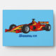 High speed racing cars cartoon illustration plaque