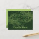Green computer circuit board Bar Mitzvah thank you postcard. This non-traditional computer motherboard or electronics inspired design features a subtle Jewish Star of David along with circuitry as you'd see on an electronic circuit board. These elements are paired with digital computer fonts and some binary code. The binary code actually says "thank you", but if you want, we can change it to the binary code of the Bar Mitzvah boy's name or remove it altogether. The colours are various shades of green from a light lime green to a deep forest green. The front is a dark version of the design and the back is a lighter green version of the design.