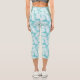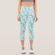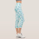 These women's high waisted capris are shown in a aqua and white colours tropical palms design.