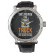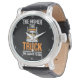 This unique wall clock blends trucking passion with a spiritual sentiment. Featuring an orange semi-truck against a black background and a matching orange rim, it boldly states: "THE HIGHER THE TRUCK THE CLOSER TO GOD". It's a thoughtful and meaningful gift for any truck driver who finds solace and connection on the open road. The design tool can also be used to add custom text if you want your name or company on this clock. You can customise the colour of the frame to any colour you desire by going into the design tool.