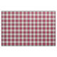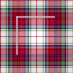 Fabric in a cherry red and creamy white plaid pattern with navy blue and light green accents. A Plaidwerx original pattern from 2020, designed to commemorate early Scottish and Scots-Irish communities in the Appalachian highlands. Pattern repeats every 4". Special order smaller or larger scale via https://plaidwerx.com/contact.htm