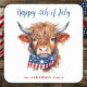 Highland Cow 4th Of July Red White Blue Patriotic Square Sticker