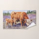 Highland Cow and Calf Purple Wildflowers Hand Towel