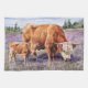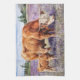 Highland Cow and Calf Purple Wildflowers Tea Towel