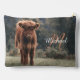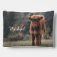 Highland cow calf autumn grass field photograph. Stunning young calf of highland scottish cattle on an autumn grassy field with muted colours. Beautiful dark hairy orange coat contrasting with light yellow green grass and trees in bokeh in background. Custom personalizable monogram with your name and inital on the left.