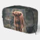 Highland cow calf autumn grass field photograph. Stunning young calf of highland scottish cattle on an autumn grassy field with muted colours. Beautiful dark hairy orange coat contrasting with light yellow green grass and trees in bokeh in background. Custom personalizable monogram with your name and inital on the left.