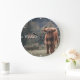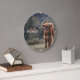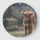 Highland cow calf autumn grass monogram initial large clock