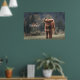 Highland cow calf autumn grass field photograph. Stunning young calf of highland scottish cattle on an autumn grassy field with muted colours. Beautiful dark hairy orange coat contrasting with light yellow green grass and trees in bokeh in background. Custom personalizable monogram with your name and inital on the left.