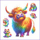 Funny rainbow highland cow along with four other cute animal friends fill this design. With his friends the sloth, dog, cat and fox, this cute cattle is sure to bring a smile!