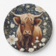Highland Cow Elegant White Floral Paper Plate
