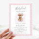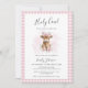 Celebrate the upcoming arrival of a precious baby girl with this charming “Holy Cow!” baby shower invitation. Featuring an adorable watercolor baby calf wearing a boho flower crown, surrounded by soft pink florals and a classic pink gingham border, this invitation is perfect for a sweet western or farm themed baby shower.