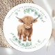 Highland Cow Greenery Farm Animals Kids Birthday Classic Round Sticker