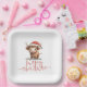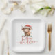 Highland Cow in Santa Hat Merry Christmas Paper Plate