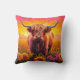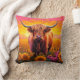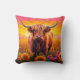 Highland Cow in Sunflowers at Sunrise Cushion