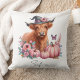 A highland cow is wearing a witch's hat with pink flowers and a pumpkin. Halloween Throw Pillow. Make this day special and celebrate it with your family and wish them a happy Halloween. fall autumn vibes, we can personalise your name