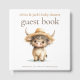 Highland Cow Please Sign Guest Book Baby Shower. Easily personalise the text as required. With a cute highland cow illustration.