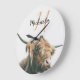 Highland cow portrait custom name initial monogram. Portrait photograph of a majestic orange brown highland cattle on a foggy day with white background.