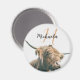 Highland cow portrait custom name initial monogram. Portrait photograph of a majestic orange brown highland cattle on a foggy day with white background.