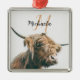 Highland cow portrait custom name initial monogram. Portrait photograph of a majestic orange brown highland cattle on a foggy day with white background.